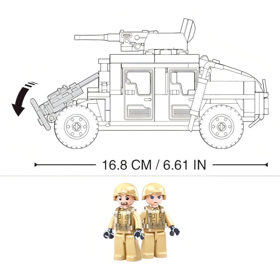 Model dobře známého vojenského vozidla s výzbrojí a dvěma mini figurkami.Model dobře známého vojenského vozidla s výzbrojí a dvěma mini figurkami.