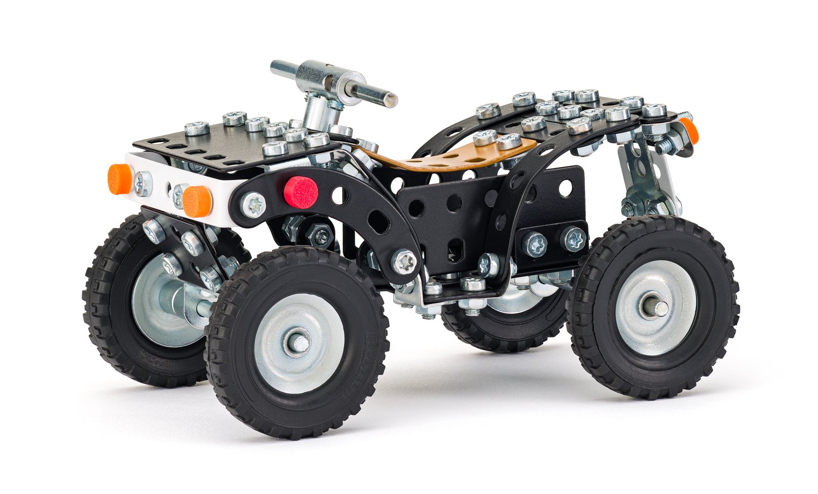 Stavebnice obsahuje kvalitní kovové díly, které se snadno spojují šroubky, což podporuje rozvoj jemné motoriky, logického myšlení a soustředění.