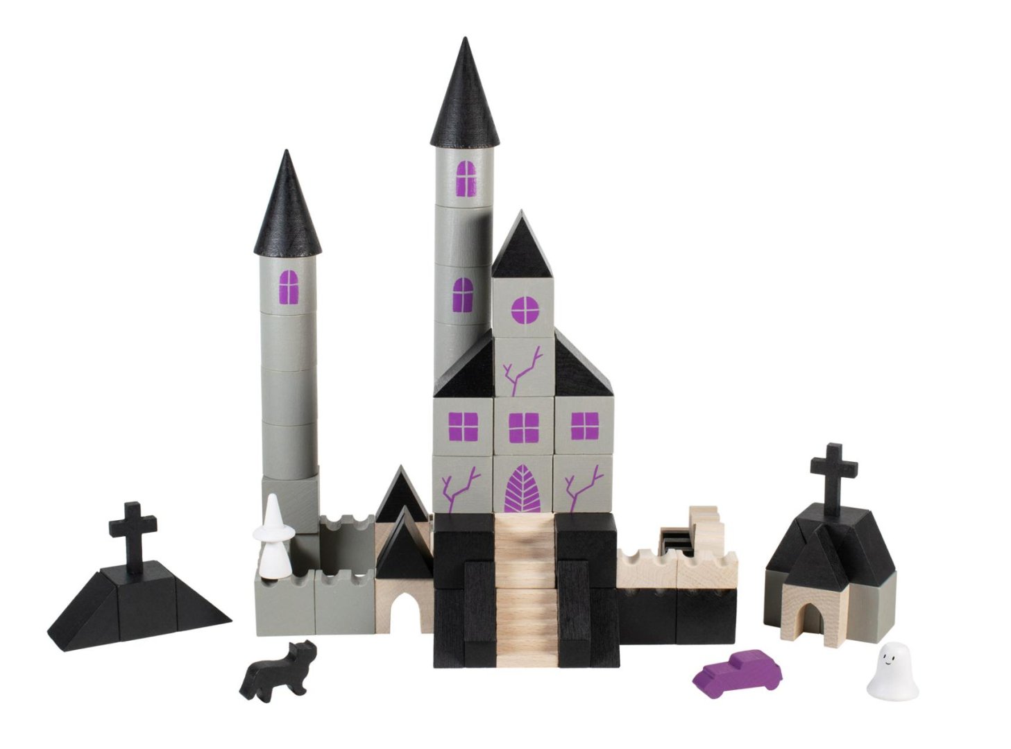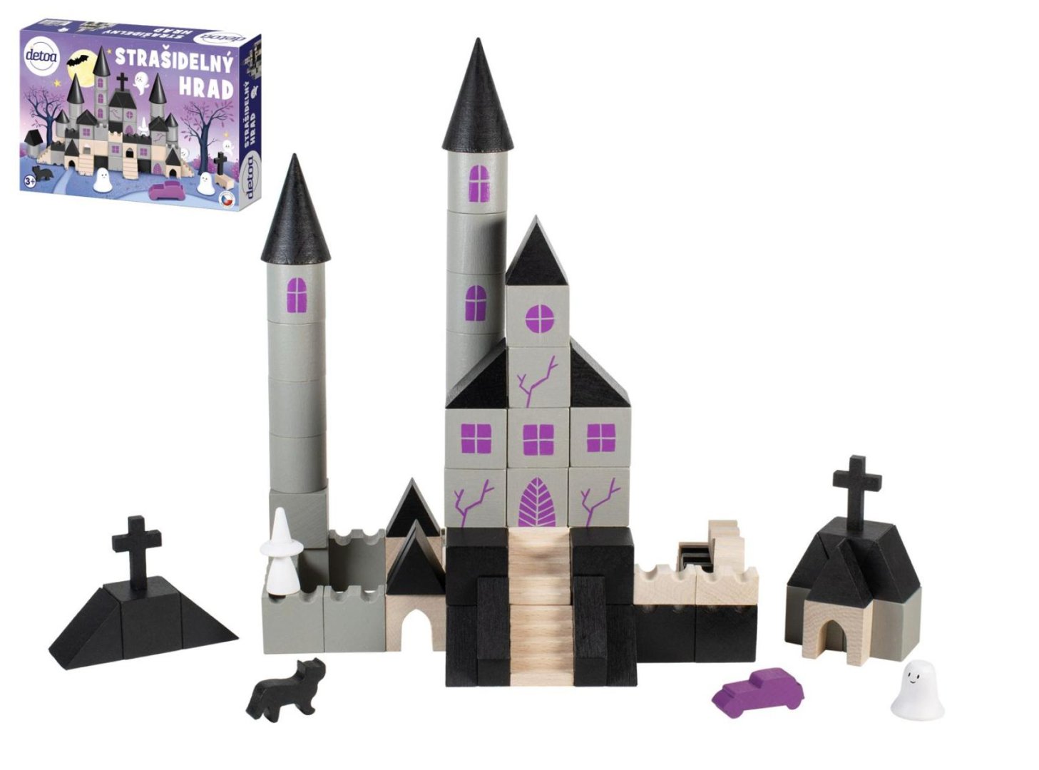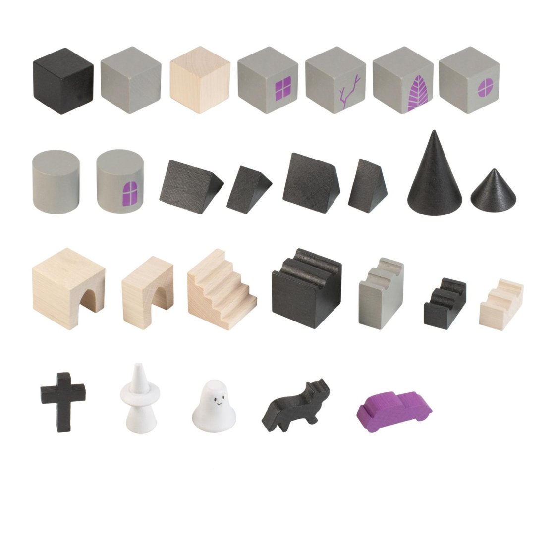 Dřevěná stavebnice obsahující 97 dílků s potiskem v různých tvarech a velikostech inspirovaná tajemným příběhem strašidelných hradů a duchů. Stavebnice pomáhá rozvíjet dětskou představivost, kreativitu a jemnou motoriku rukou.
