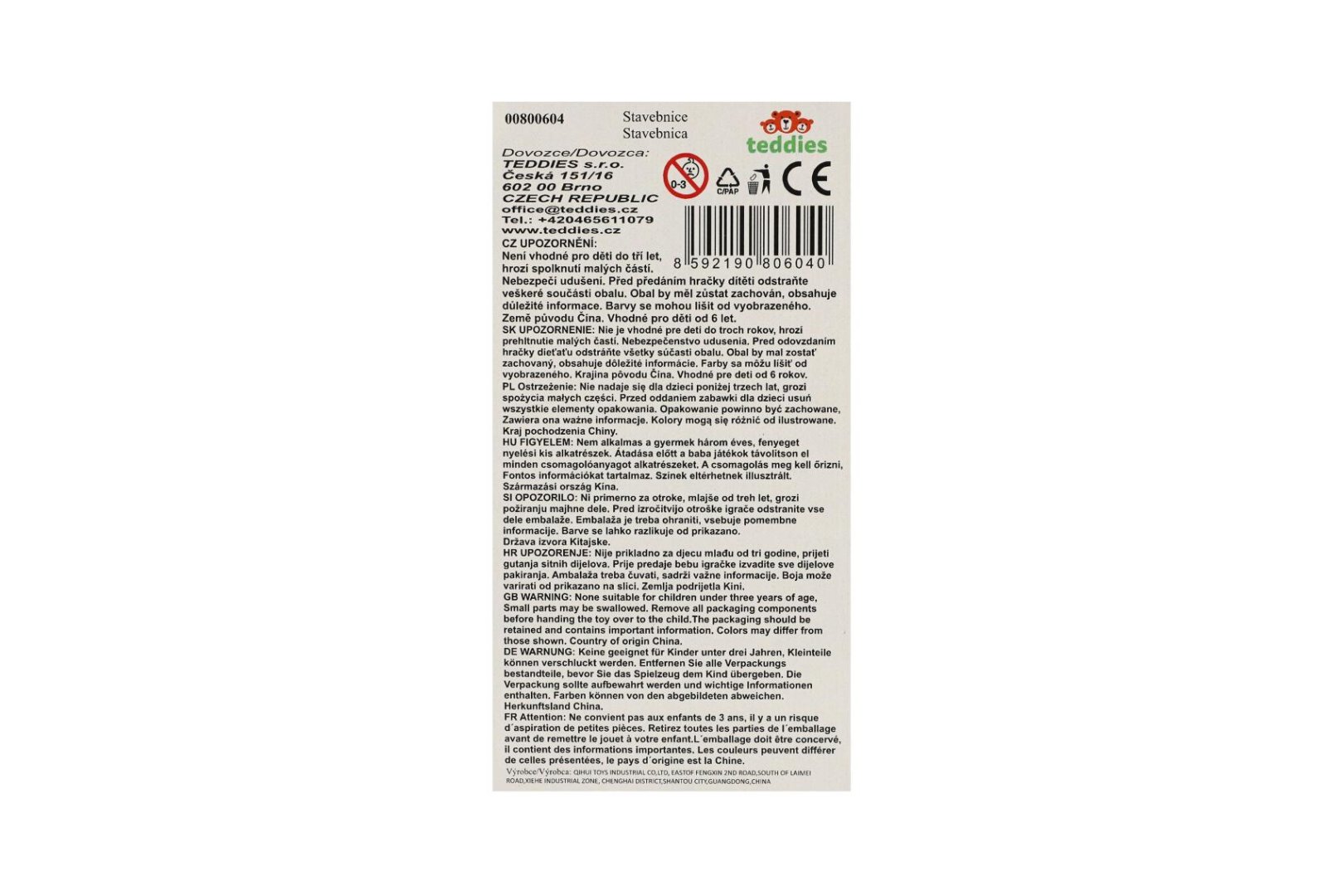 Počet dílků stavebnice: 187