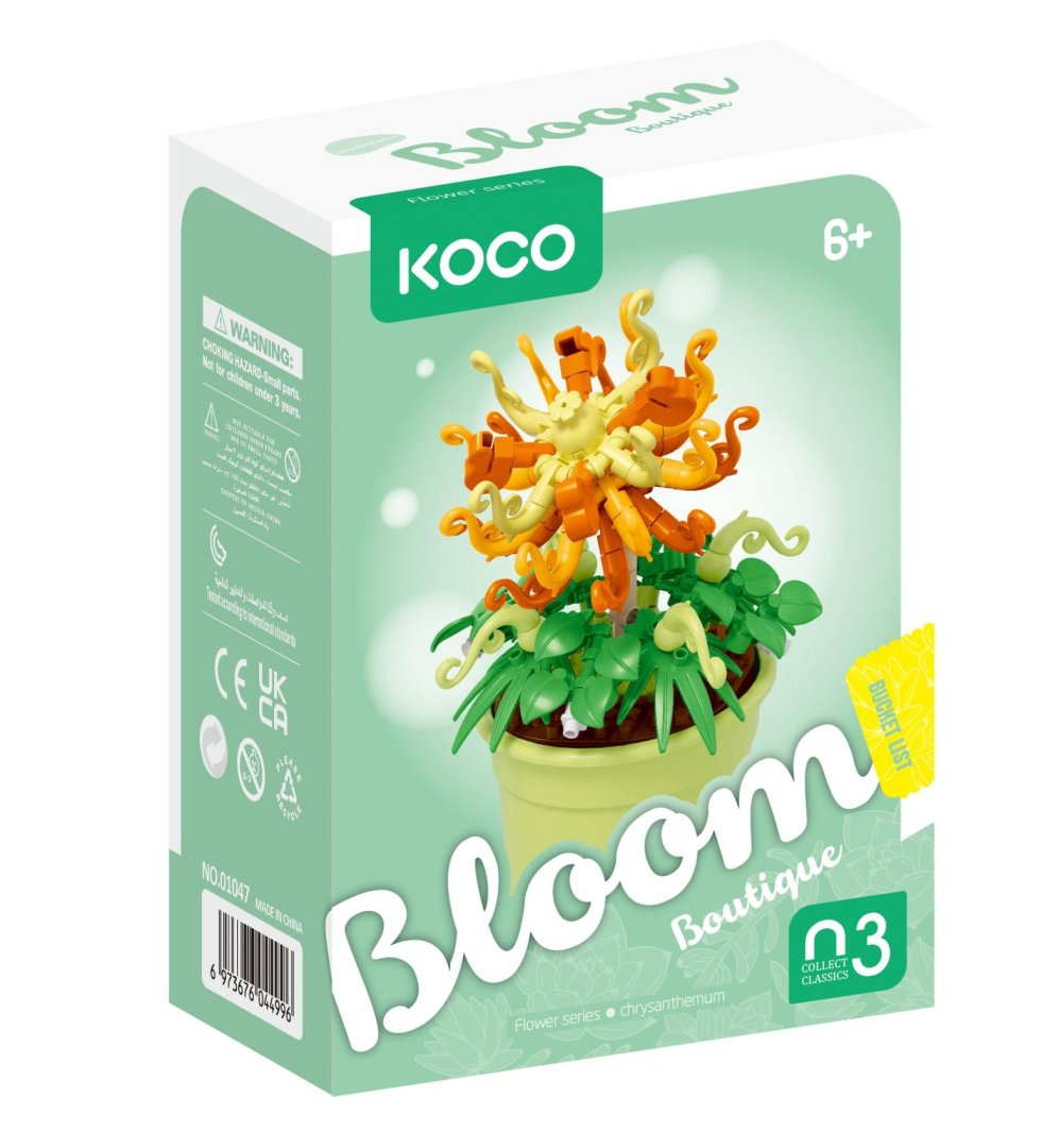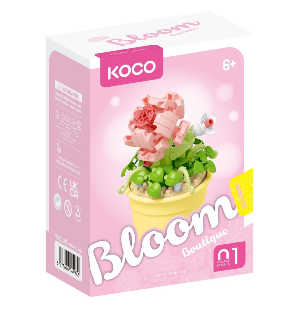 Vytvoř si barevnou květinu, která ti nikdy neuvadne! Mini stavebnice KOCO obsahuje dílky pro sestavení květiny v elegantním květináči, a to v celkem 6 různých variantách. Každý model je originální, ať už jde o tvar okvětních lístků nebo kombinaci barev. Ideální jako drobný dárek, kreativní dekorace na stůl nebo sběratelský kousek pro milovníky květin i stavebnic. Jednoduché složení zvládnou děti i dospělí – stačí jen trocha fantazie a radost je na světě!