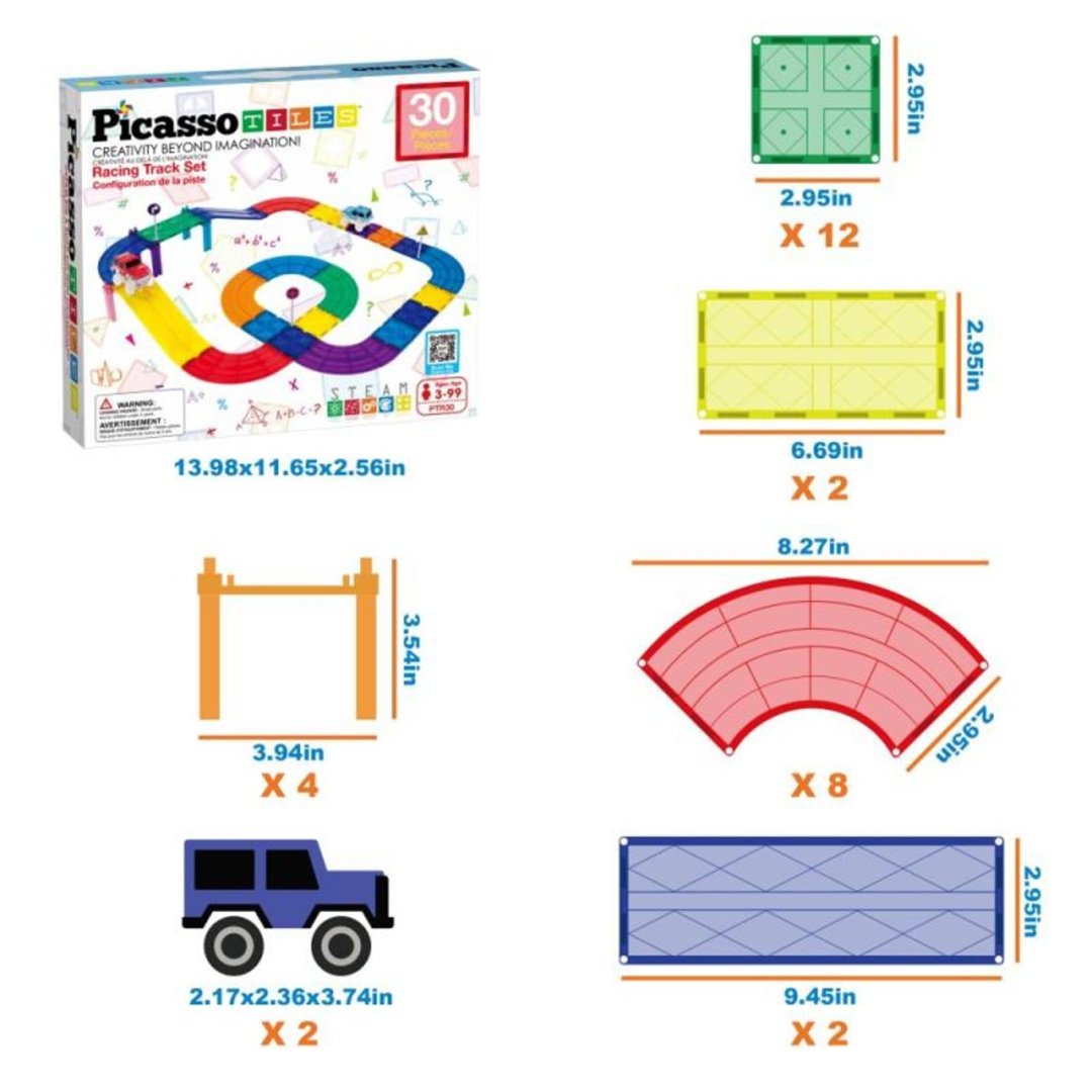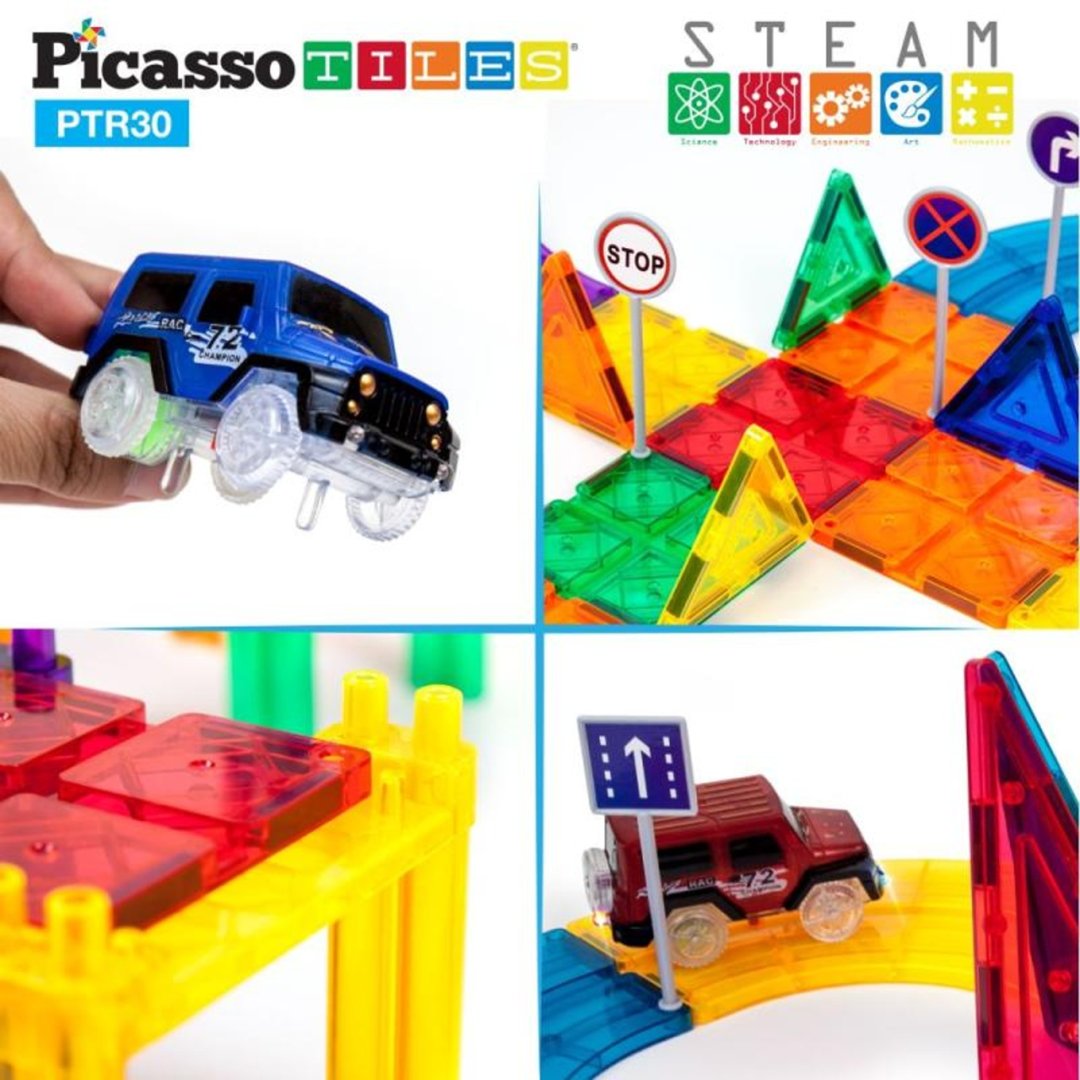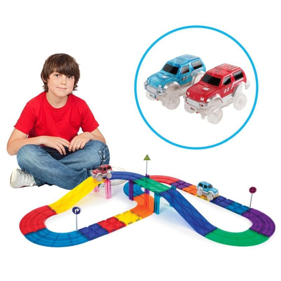 Tento set umožňuje dětem sestavovat závodní dráhy ve 3D pomocí magnetických dlaždic, ramp a sloupků. Auta pak mohou sjíždět po různých úrovních. Hra podporuje řešení problémů, kreativitu a jemnou motoriku prostřednictvím praktického STEM učení.