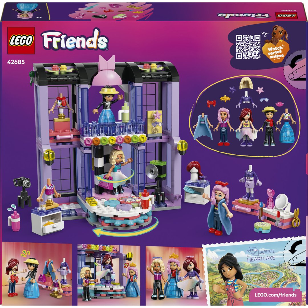 Celkově tato stavebnice Lego Friends přináší interaktivní a kreativní zážitek, který je ideální pro všechny malé nadšence módy a designu. Díky bohatému příslušenství a propracovaným detailům umožňuje rozvíjet představivost a jemnou motoriku při stavění i hraní.