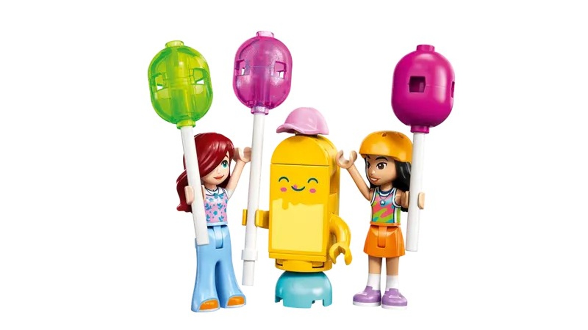 Holky a kluci od 6 let si užijí sladká dobrodružství a kreativní hraní se stavebnicí Lego Friends Stánek se zmrzlinou a balónky.Holky a kluci od 6 let si užijí sladká dobrodružství a kreativní hraní se stavebnicí Lego Friends Stánek se zmrzlinou a balónky. Stavebnice ze které si děti mohou postavit barevný stánek na kole, který je zdobený pastelovými pruhy v růžové, tyrkysové a žluté barvě. Stánek je vybaven třemi barevnými balónky ve tvaru nanuku, které jsou průhledné a dodávají modelu hravý a veselý vzhled. V zadní části stánku jsou navíc dva zásobníky na nanuky, které jsou přístupné zepředu, což umožňuje interaktivní hraní. Součástí setu jsou dvě minipanenky, Liann a Paisley, které jsou oblečené v moderním sportovním oblečení a přilbách, aby mohly bezpečně jezdit na kole. Liann jezdí na kole se stánkem, zatímco Paisley drží v ruce barevný balónkový doplněk. Stavebnice také obsahuje postavičku ve tvaru usměvavého nanuku s růžovou čepičkou, která přidává další prvek zábavy. Děti mohou dále využít doplňky jako jídelní lístek, pokladnu, telefon a malý stolek, u kterého se mohou kamarádi scházet a hrát si na prodej zmrzliny a balónků.